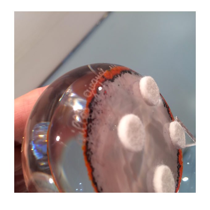 Cette boule de cristal si particulière, nous fait penser à une multitude de petites fleurs, qui semblent flotter. Tel un herbier de cristal.