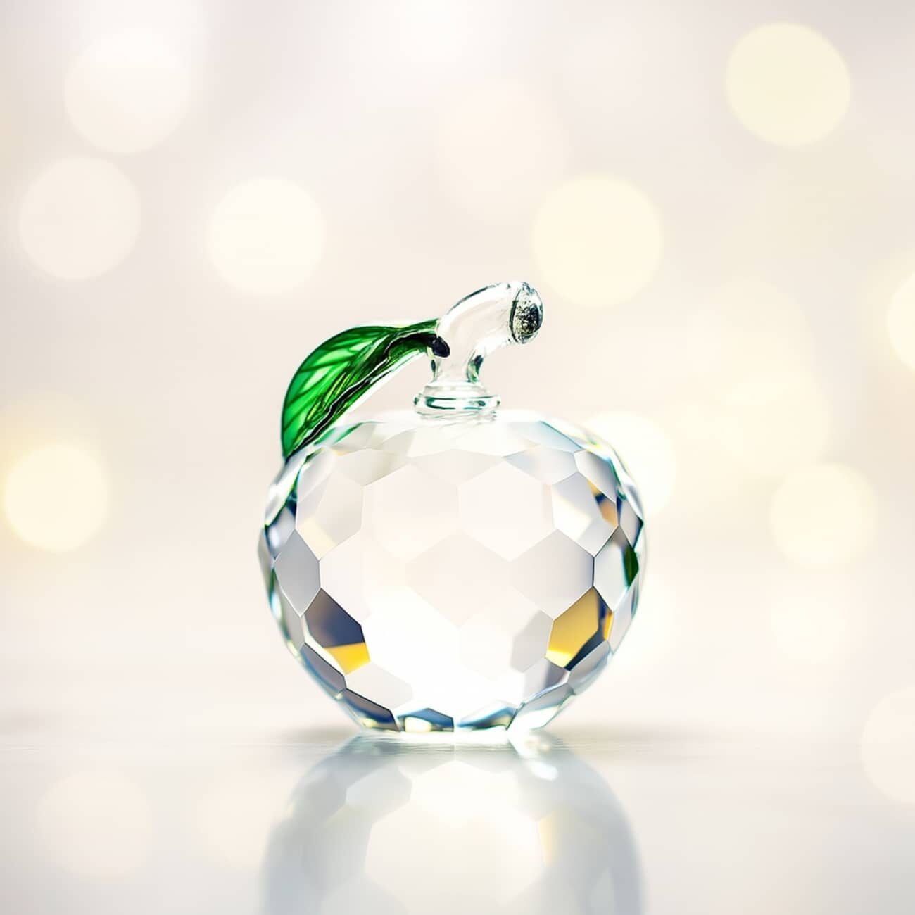 PRESSE-PAPIER POMME CRISTAL, Croquez dans le fruit défendu ! Cette pomme en cristal est sublimée par une taille à facette. Une délicate feuille verte termine la création, apportant une note de couleur et poésie. Un objet contemporain se suffisant à lui-même.