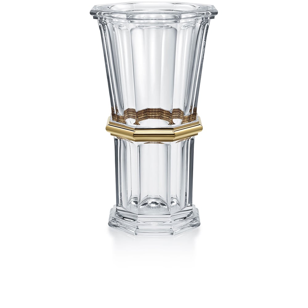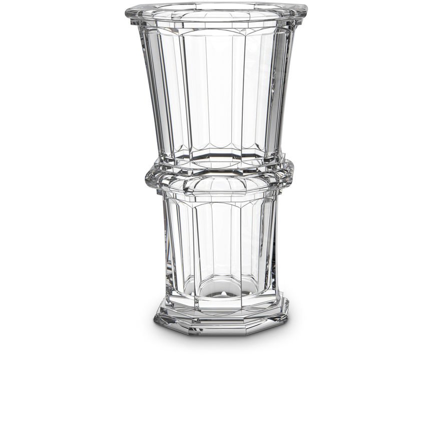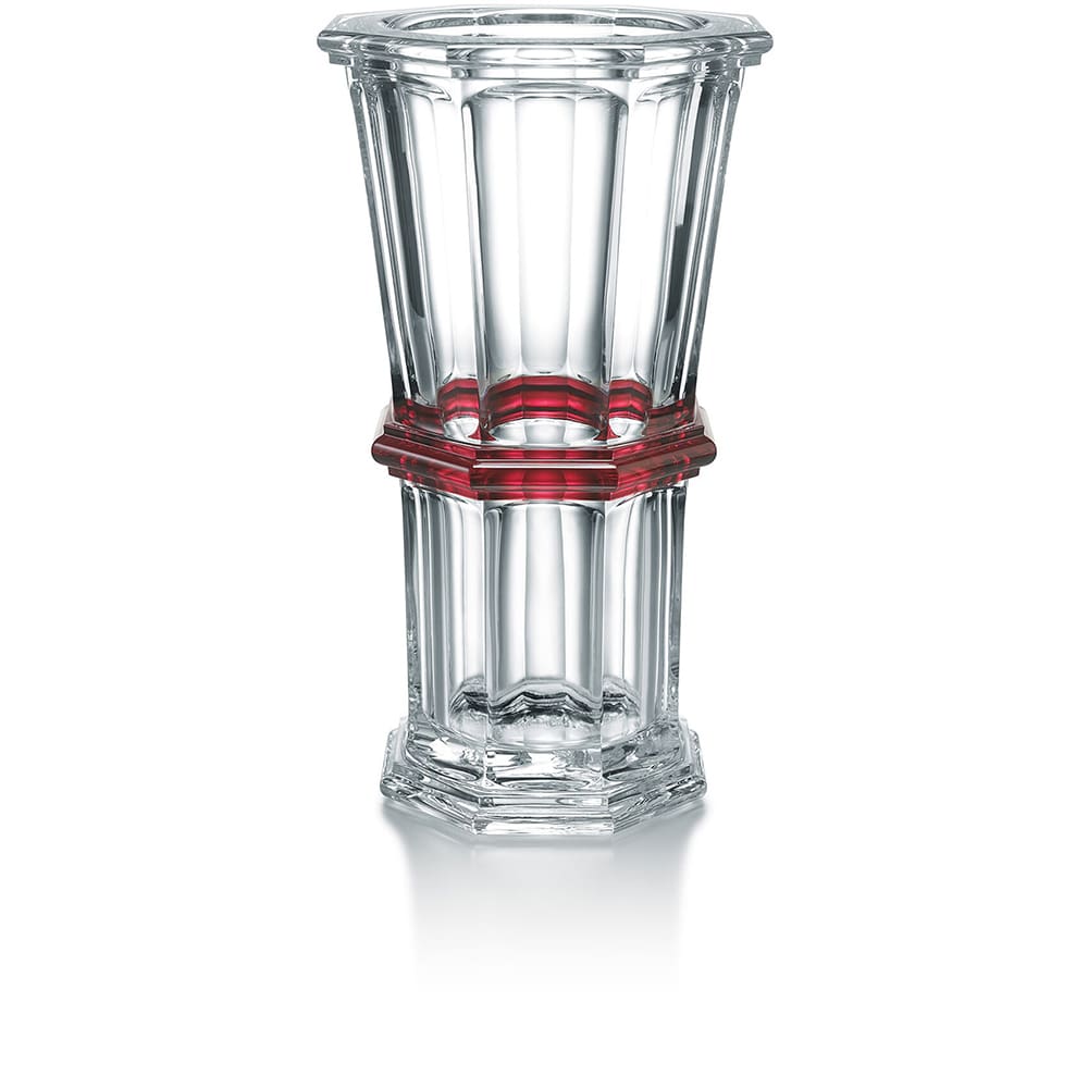 Découvrez le vase Harcourt 1841 Baccarat, disponible en cristal clair, en rouge ou bien habillé d’or 20 carats. Magnifiant les effets de lumière depuis 170 ans, le mythe Harcourt incarne bien au-delà d’un verre, une famille d’objets au destin rayonnant. Ce vase, avec sa forme octogonale, son décor de côtes plates taillées et son style architecturé, en sont une des plus récentes illustrations. Vase Harcourt 1841 cristal clair Baccarat.