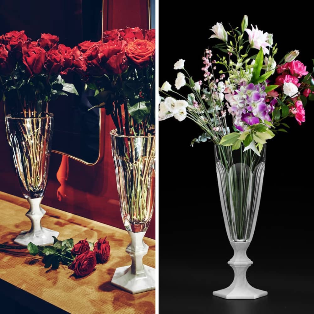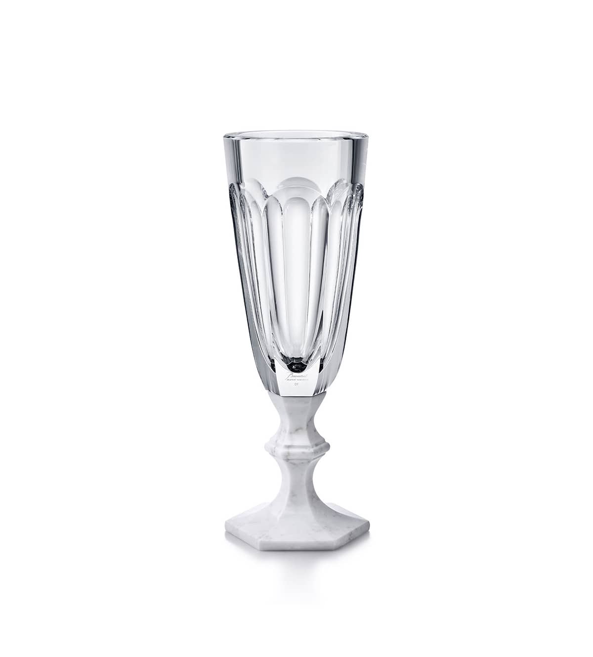 Découvrez le vase Harcourt flutissimo Baccarat avec sa base en marbre blanc de Carrare. Un vase de 45cm de hauteur en cristal clair signé Marcel Wanders Studio.