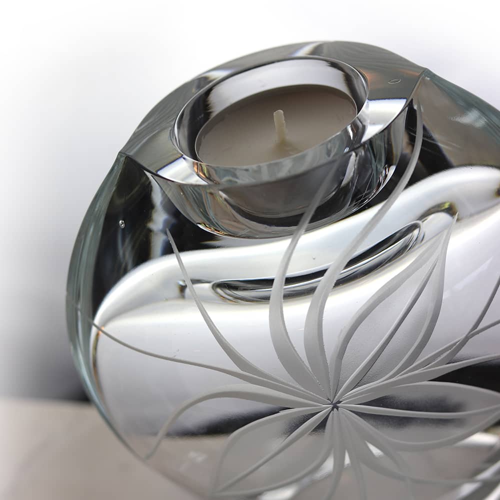Découvrez la dernière création des artisans de la cristallerie Lehrer. Le vase bougie Roni est gravé à la main dans les ateliers de la manufacture, s’inspirant du naturalisme des forêts du pays de Bitche.