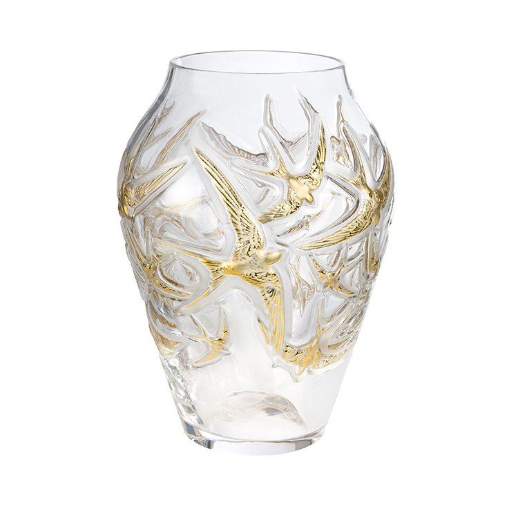 Découvrez le vase Hirondelles grand modèle Lalique. Célébrant le 130ème anniversaire de la Maison, la nouvelle collection nous entraîne au coeur du patrimoine et du riche héritage construit par René Lalique. Lalique réinterprète aujourd’hui la figure de l’hirondelle, annonciatrice du printemps, symbole de bonheur et de liberté. Sculptées dans le cristal satiné repoli, les hirondelles se juxtaposent dans un jeu de répétition graphique.