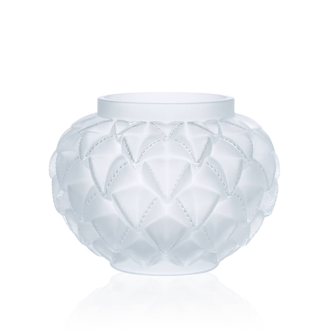 Grâce à la collaboration exceptionnelle de la Réunion des Musées Nationaux, Lalique réédite aujourd’hui en cristal le vase Languedoc. Inspiré par la végétation luxuriante du sud de la France, ce vase au relief accentué met en scène des feuilles de cactus finement ciselées. L’intensité du cristal vert répond à la générosité du décor luxuriant. Véritable œuvre d’art, cette sculpture de lumière célèbre la richesse du patrimoine de la Maison Lalique et son inscription dans la modernité.