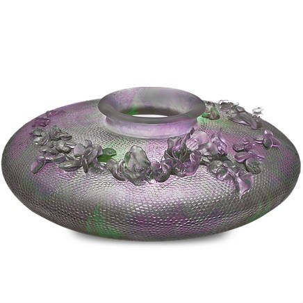 VASE MAGNUM PLAT JARDIN IMAGINAIRE DAUM, La collection Jardin imaginaire suit le fil rouge tracé par Mauricio Clavero Kozlowski depuis un an. Après l’univers luxuriant et végétal de la collection jungle, la collection de septembre à laissé place au floral avec la collection bouquet et sa multitude de fleurs exotiques.