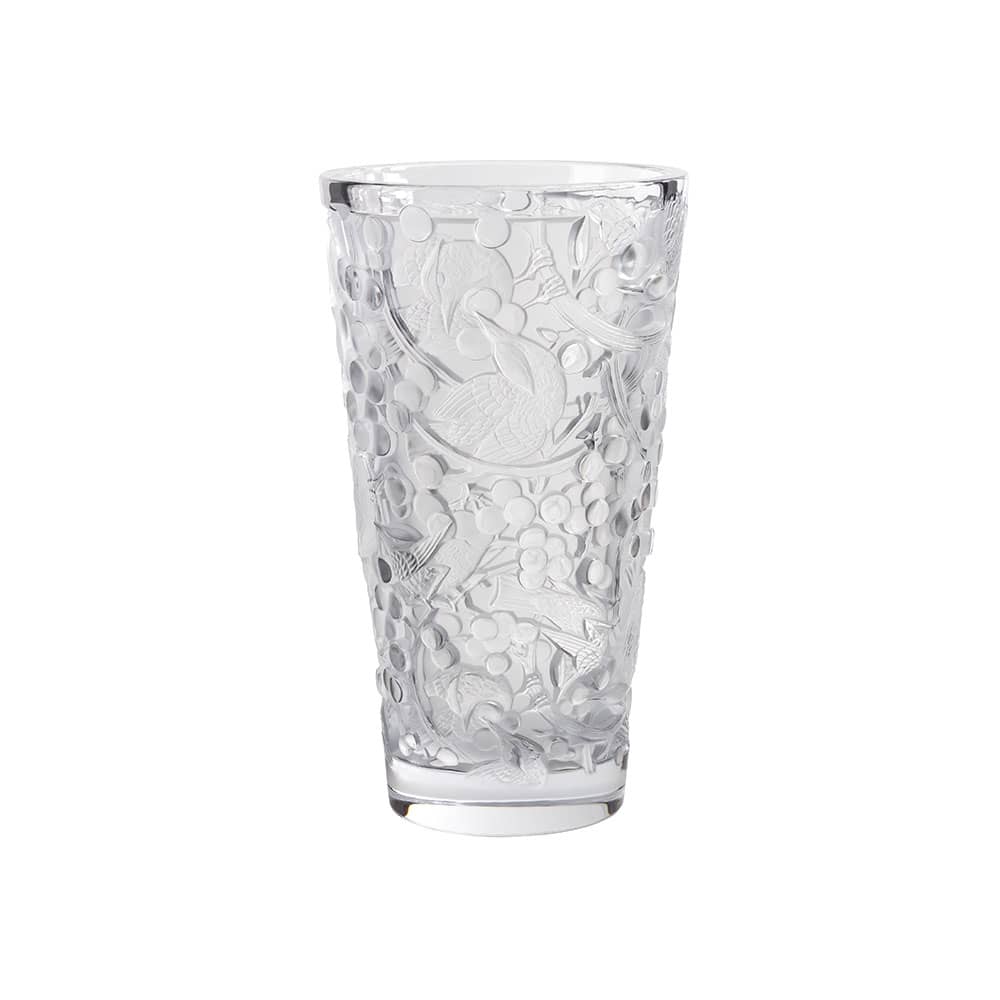 Découvrez le vase Merles et Raisins GM de la cristallerie Lalique, disponible en cristal incolore et incolore tamponné or.
