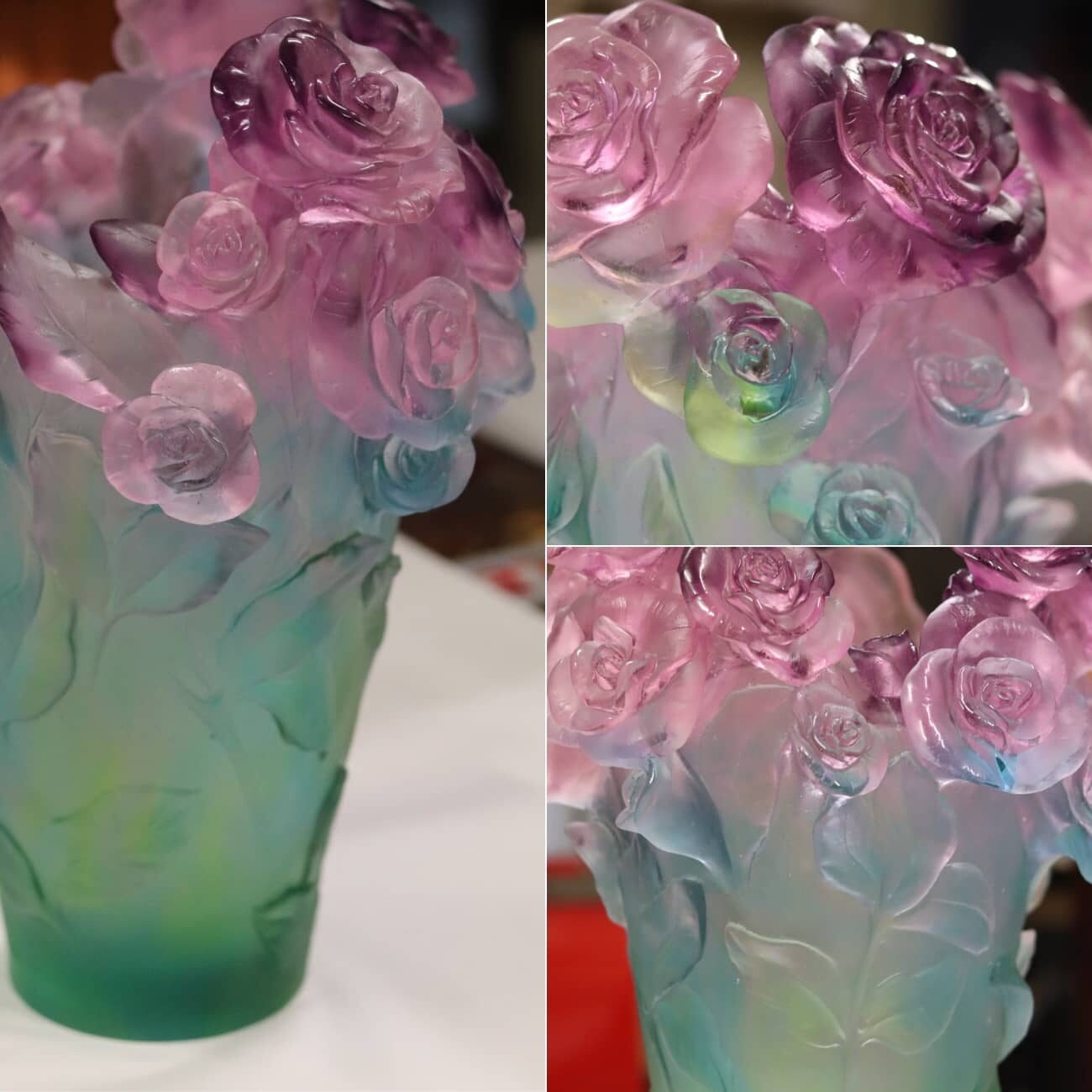 VASE ROSES PASSION VERT ROSE DAUM :
