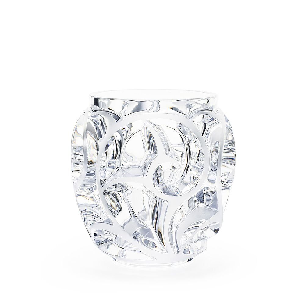 VASE TOURBILLONS RENE LALIQUE, 1926 : René Lalique, au faîte de son art, imagine le vase Tourbillons. Inspiré par l’éclosion d’une fougère, plante récurrente dans l’œuvre du célèbre artiste, le motif abstrait laisse une grande liberté d’interprétation. Graphiques et poétiques, les volutes cadencées de lumière sont un vertige de mille feux, absorbant sans effort le regard dans leur profondeur.