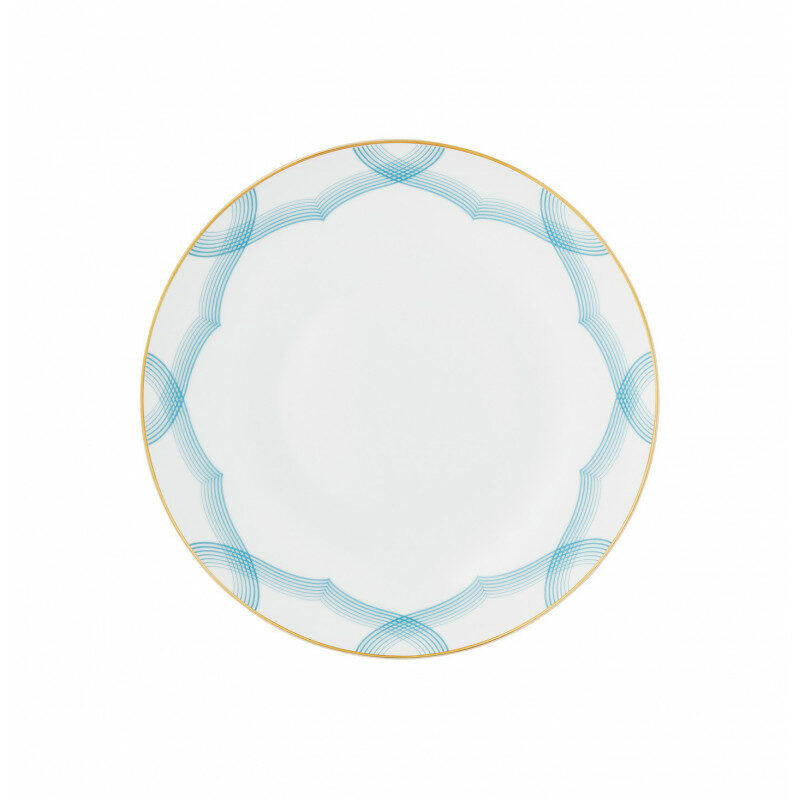 Sublimez votre table avec la collection Aura de Raynaud, une pièce d’exception alliant tradition et modernité. Inspirée des porcelaines festonnées du XVIIIᵉ siècle, cette création révèle un décor graphique aux traits bleus intenses, s’affinant délicatement en courbes aériennes. Un filet et une pastille d’or illuminent l’ensemble, apportant éclat et raffinement à vos dressages quotidiens comme à vos réceptions les plus élégantes.