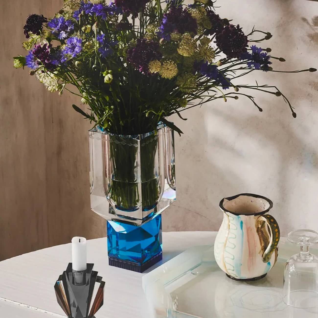 Vases, bougeoirs, coupes et presse-papiers s’imposent comme des icônes contemporaines où l’élégance rencontre l’innovation. La maison cultive une philosophie durable, en produisant peu, en valorisant chaque pièce et en adoptant une approche zéro déchet.