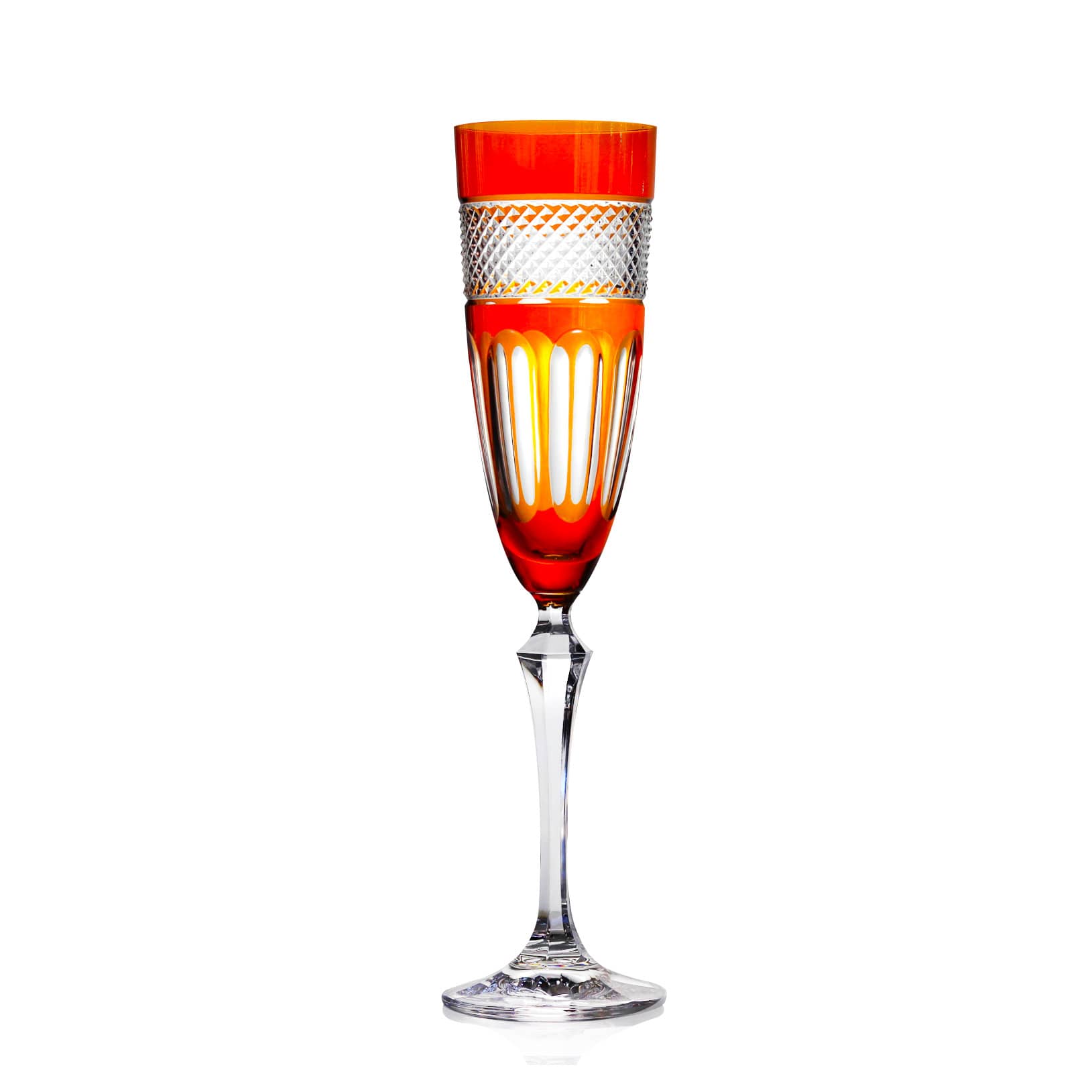 Discover Color Champagne crystal flute mireille. Specialist of the size, Cristal de Paris brings a real know-how on every piece. Champagne flute presents a diamond size, as well as the famous size with flat coast. Created in 1970 by Marcel Ferstle, Cristal de Paris is one of the most former, immortalizing the tradition. Similar to the service Yvan, every flute is blown mouth, cut hand. Cristal de Paris offers a very high quality craftsmanship, glasses with 18 % of lead. A premium brand, on the border of luxury brands. Crystal de Paris champagne flute, Color crystal diamond flute.