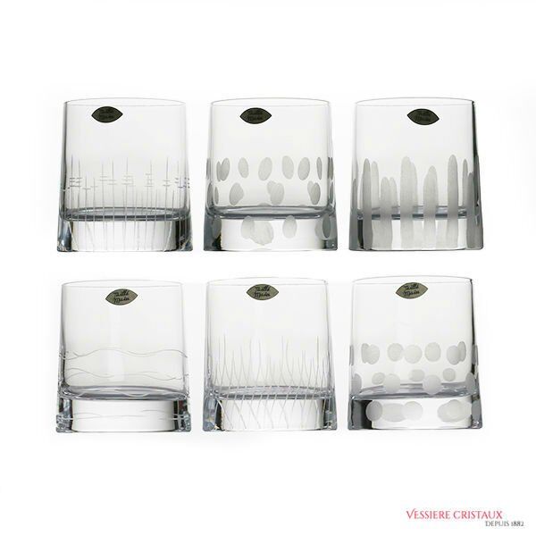 FRENCH CRAFT CRYSTAL TUMBLERS, Handcrafted by craftsmen in a workshop located in Lorraine (France), each glass is hand cut, presenting 6 different designs. A French manufacturer, made near Sarrebourg.