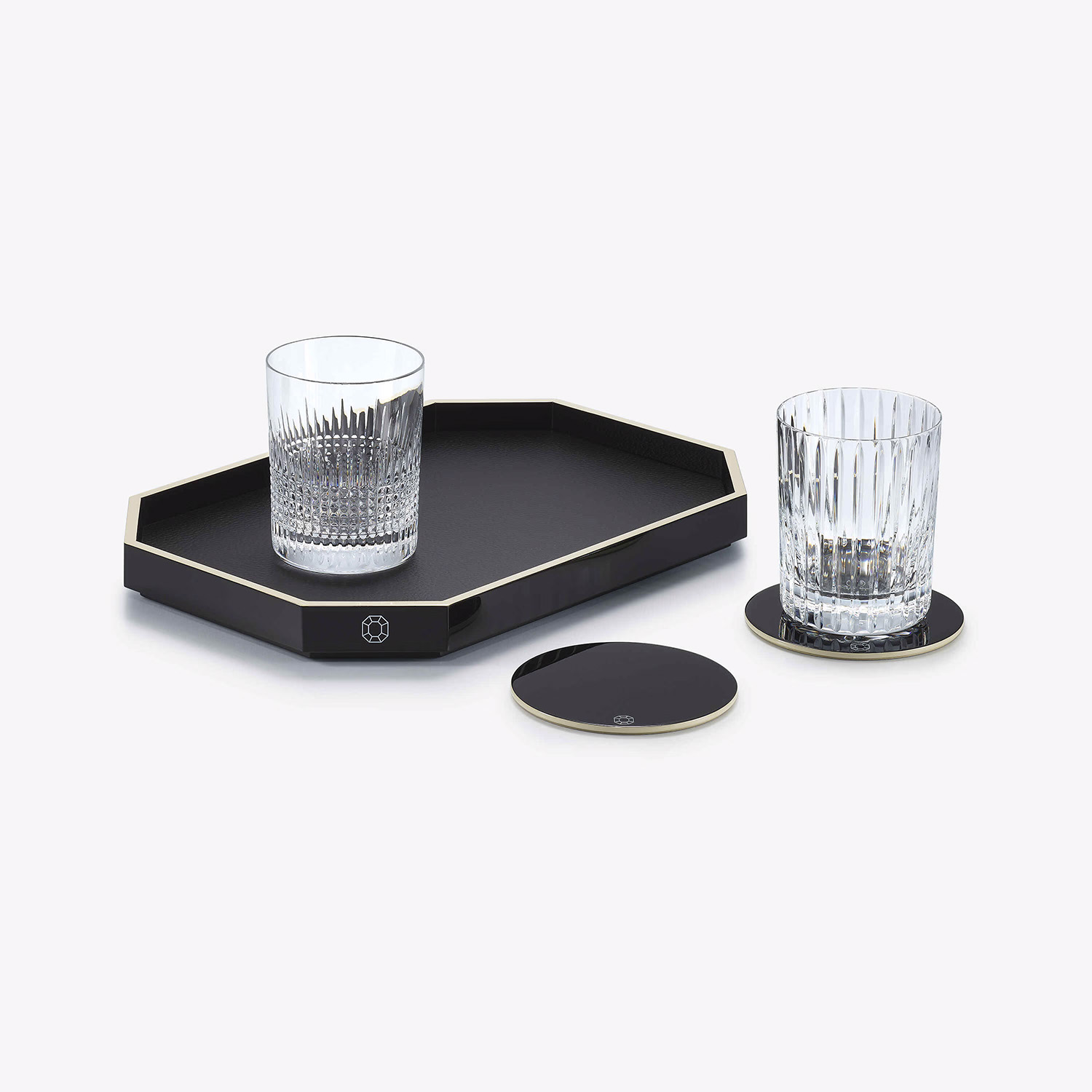 The Octogone tray is a beautiful, lacquered piece, available in 3 sizes. Inspired by the red octagonal tassel, the iconic signature of Baccarat, a series of refined lacquered accessories comprise these new pieces, which come to enlarge the Octogone collection. The tray, in the shape of an octagon, is meticulously handcrafted using ancestral artistry. Its brilliant surface captures the light and highlights Baccarat’s crystal creations. Each tray comes with a removable leather insert, adding an elegant contrast of materials and textures. The Octogone tray exists in a variety of shades, enriched over the seasons and matched with the coaster from the same collection.