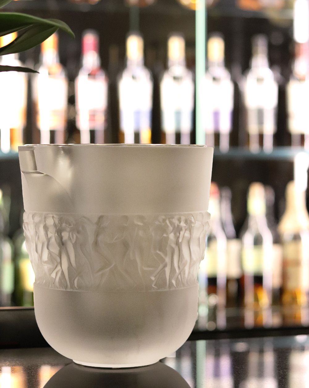 BACCHANTES CHAMPAGNE COOLER LALIQUE, In 1927, René Lalique’s boundless imagination and creative genius lead to the creation of the Bacchantes vase displaying the young priestesses of Bacchus offering their voluptuous beauty and curves. A work of unparalleled beauty, its splendor and sensuality left people spellbound. This vase has become a lasting symbol of Lalique’s celebrated style and remains a top-seller throughout the world. Its meticulous detailing, carved by the hand of a craftsman, adds a playful use of light and dimension. Discover Bacchantes Lalique collection.