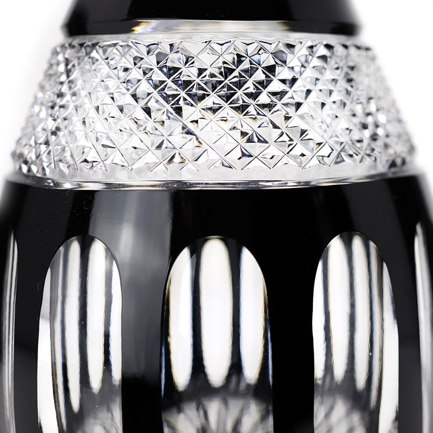 BLACK CLEAR CRYSTAL DECANTER, Specialist of the size, Cristal de Paris brings a real know-how on every piece. Created in 1970 by Marcel Ferstle, Cristal de Paris is one of the most former, immortalizing the tradition. Every glass is blown mouth, cut hand. Among its clients, great foreign palaces but also French. The crystal factory provides the Bristol Hotel in Paris.