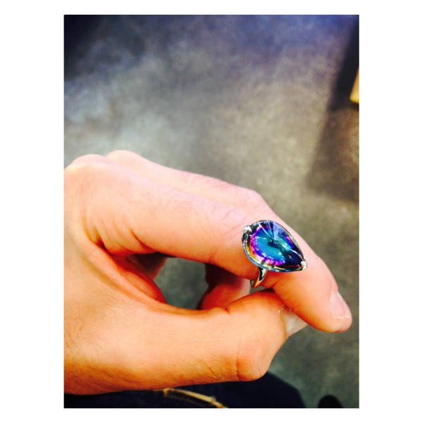 FLEURS DE PSYDELIC RING BACCARAT, Fleurs de Psydelic is an iconic collection in Baccarat’s jewellery range, in scarab blue crystal. Your attention will be drawn by the unique dark colour of the drop of crystal that is emblematic of the collection. The range includes long and short necklaces, earrings and rings, all in precious silver mounts. Silver : 6 gr. Discover Fleurs de Psydelic collection Baccarat.