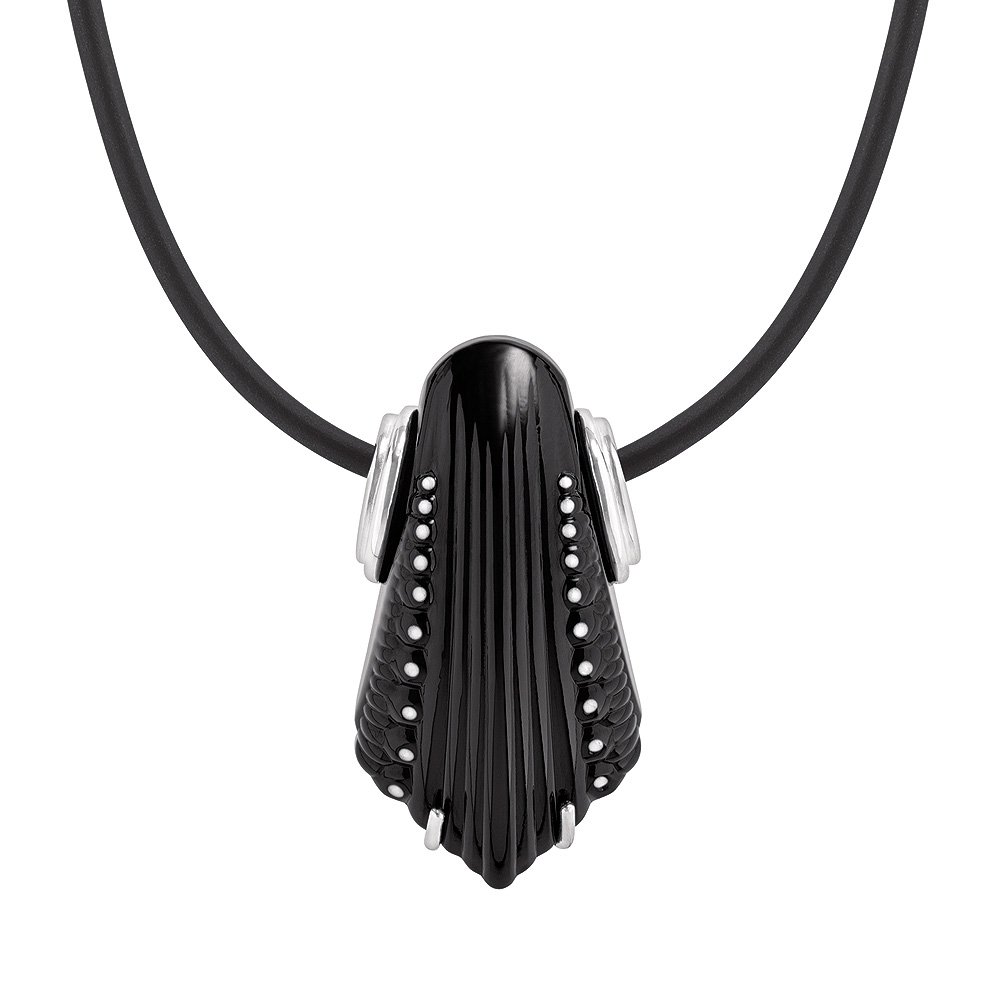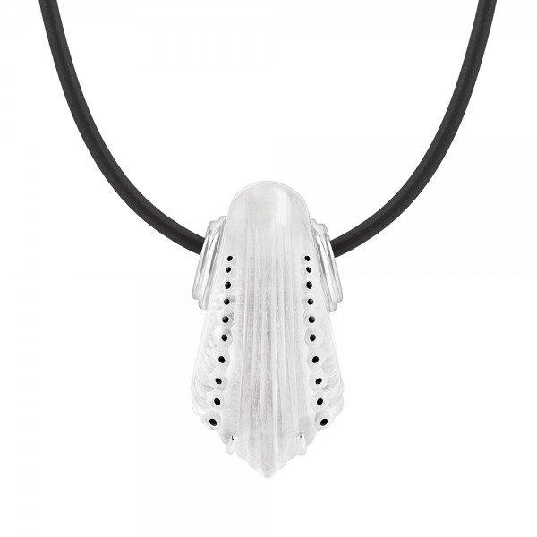 ICONE CRYSTAL PENDANT LALIQUE, In this sculpted crystal motif Icône of Art Déco inspiration the round, generous cabochon cut of the Gourmande ring unites with the gadrooned grooves of the Vibrante line that interlace with the enamel, color-contrasted points of the famous Cactus motif. A sensual, elegant, iconic collection.