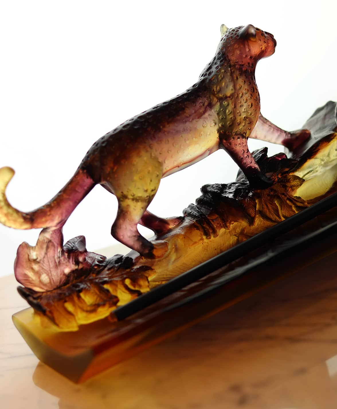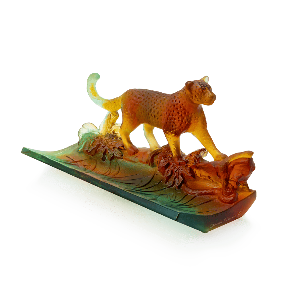 The explorers of the Maison Daum venture into the wilderness and bring us the remarkable feline – the wild leopard. With the Leopard collection, the craftsmen of the manufacturer delicately depict the beautiful predators in its natural habitat. During the day, the majestic cat lounges on top of a tree branch in the savannah, observing its surroundings and guarding its territory; at night, the creature moves along the forest with fluid grace. In a hunting mode, the leopard is alert and ready to pounce on its prey.