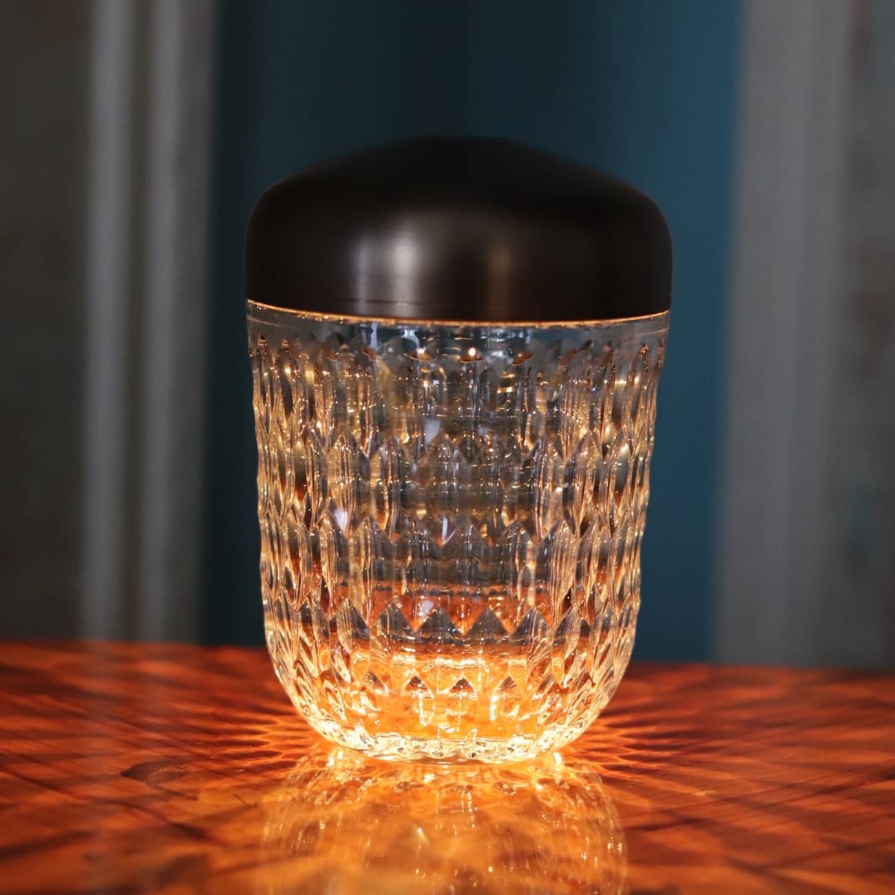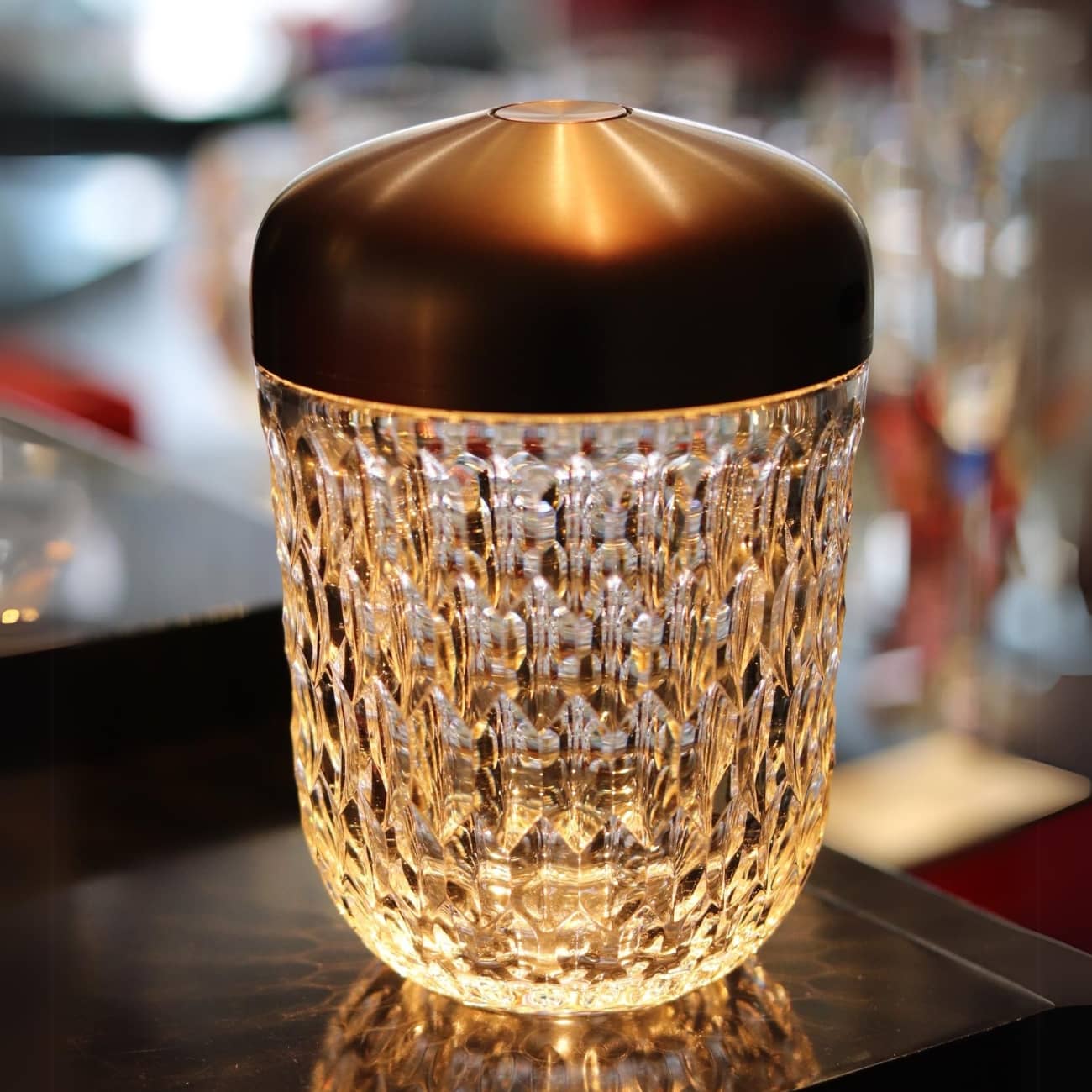 This collection is characterized by pure shapes and a rich deep-bevelled cut crystal, creating decoration that ranges from the geometric to the organic, inspired by leaves and the surrounding countryside. With “Folia”, Saint-Louis enhances its collections by pairing crystal with copper.