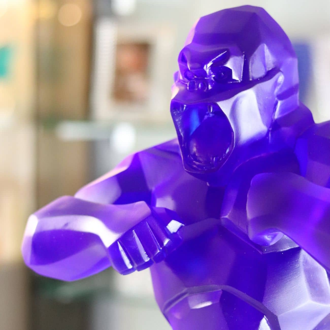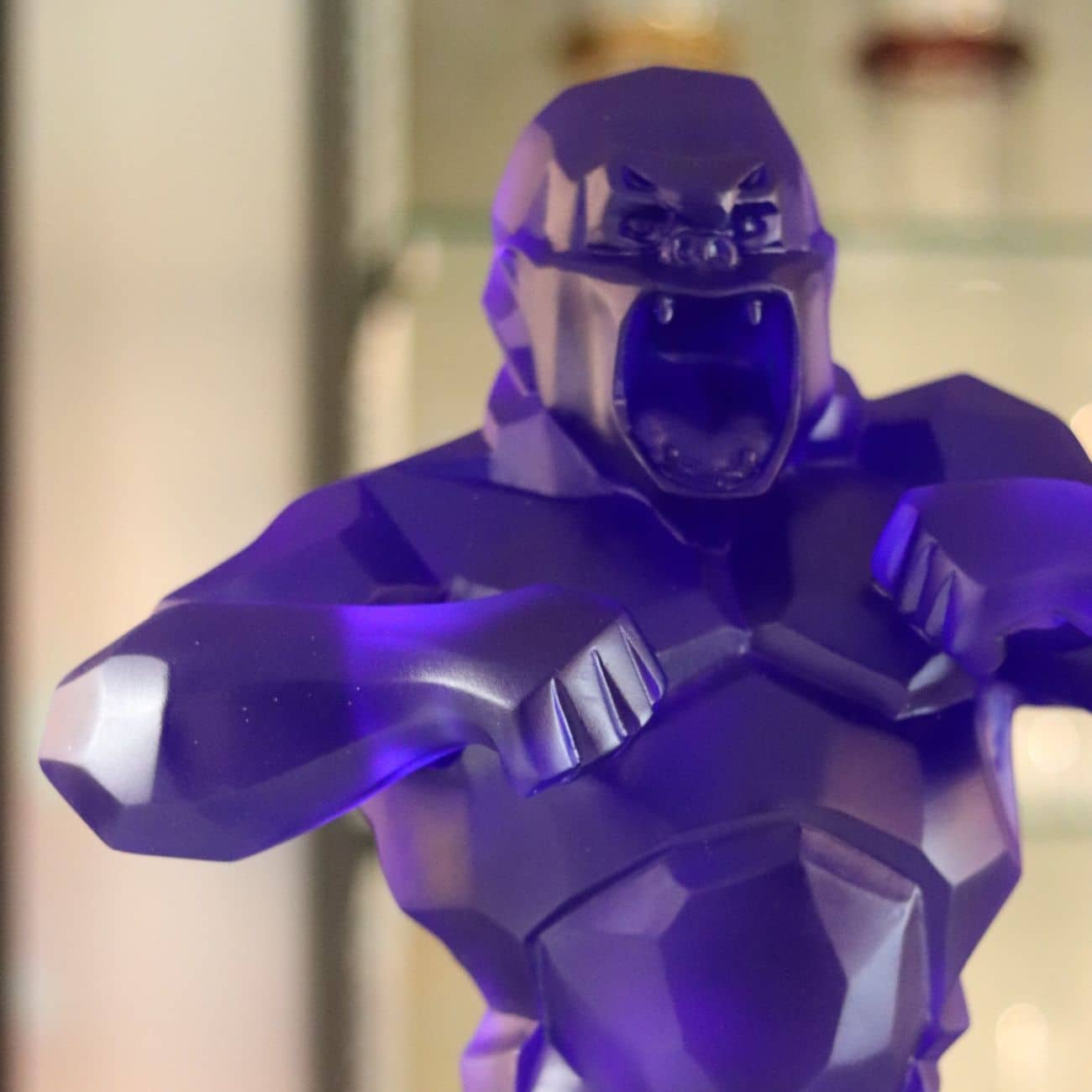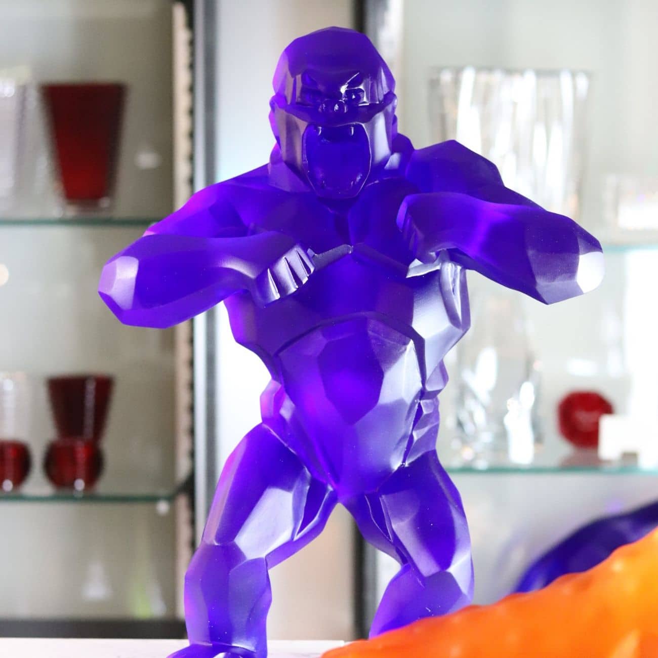 BLUE WILD KONG BLUE ORLINSKI DAUM, Cut in facets, as is a diamond, and with its frightening fangs, Wild Kong portrays itself as invincible as it beats its chest with its threatening fists, all aspects of the “Born Wild” concept. Discover Richard Orlinski sculptures.