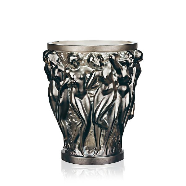 BRONZE CRYSTAL BACCHANTES VASE LALIQUE, In 1927, René Lalique’s boundless imagination and creative genius lead to the creation of the Bacchantes vase displaying the young priestesses of Bacchus offering their voluptuous beauty and curves. A work of unparalleled beauty, its splendor and sensuality left people spellbound. This vase has become a lasting symbol of Lalique’s celebrated style and remains a top-seller throughout the world. Its meticulous detailing, carved by the hand of a craftsman, adds a playful use of light and dimension. Discover Bacchantes Lalique collection.