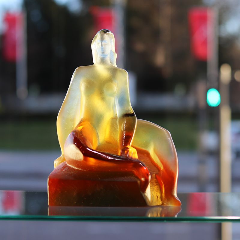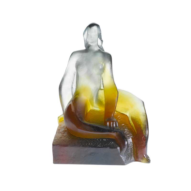 DAPHNÉ GREY AMBER CRYSTAL DAUM, Medium-size statuette in amber and grey crystal, limited edition 225 copies, signed Daum France and Marter Jan et Joel.