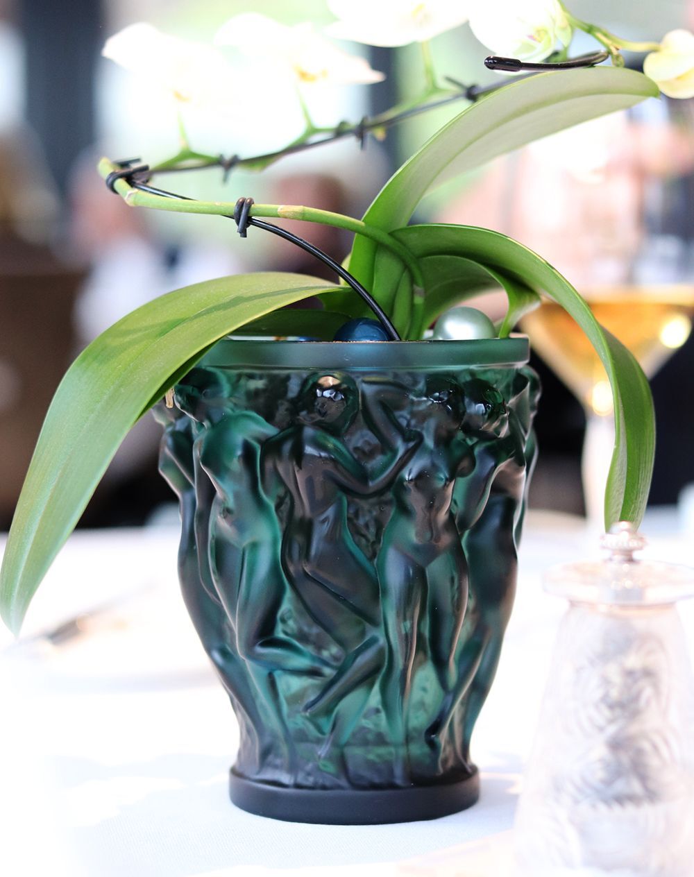 GREEN CRYSTAL BACCHANTES VASE LALIQUE, In 1927, René Lalique’s boundless imagination and creative genius lead to the creation of the Bacchantes vase displaying the young priestesses of Bacchus offering their voluptuous beauty and curves. A work of unparalleled beauty, its splendor and sensuality left people spellbound. This vase has become a lasting symbol of Lalique’s celebrated style and remains a top-seller throughout the world. Its meticulous detailing, carved by the hand of a craftsman, adds a playful use of light and dimension. Discover Bacchantes Lalique collection.