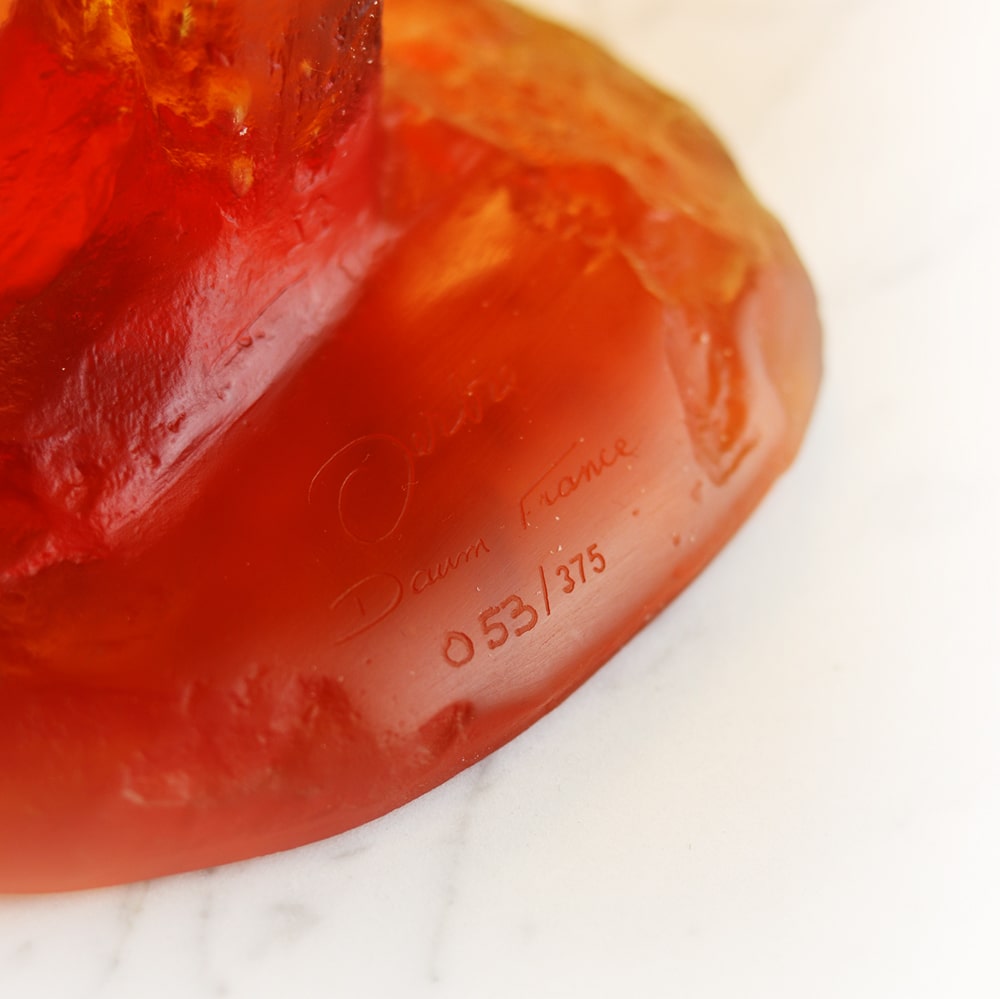 Each Daum Crystal art work creation is signed with “Daum France” and numbered by hand. Every Daum piece we sell is brand new in the original box with all paperwork, first quality. Since 1878 Daum have been crafting world-renowned beauty in lead crystal using rare and ancient techniques. Daum´s perfect mastery of pate de verre has earned it a worldwide reputation for excellence. The artisans at Daum are able to capture both fine details and subtle contouring, and each glass sculpture will radiate with light and color, making it a beautiful addition to any home, and the perfect gift.
