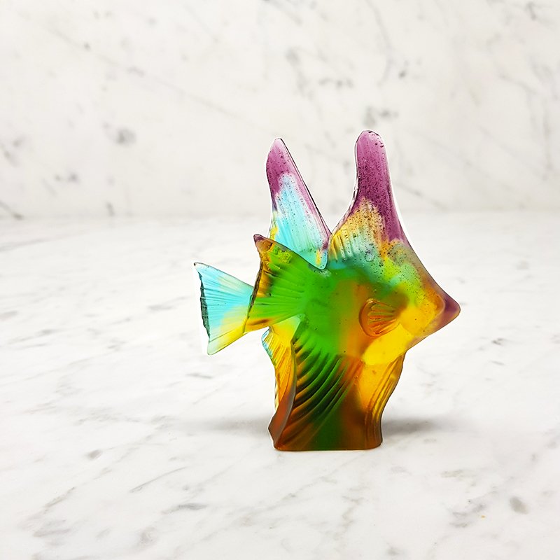 AMBER GREEN FISH SCULPTURE COUPLE DAUM :