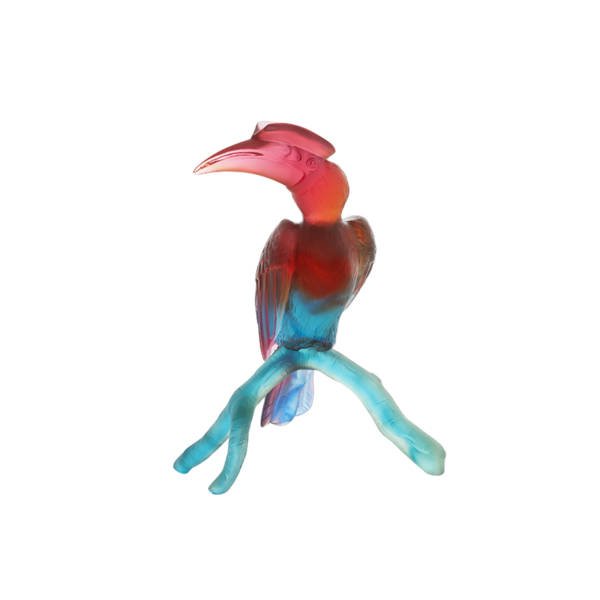 CALAO ON BRANCH DAUM, Hornbill on branch, Serialized, signed Daum France . Height: 24 cm.