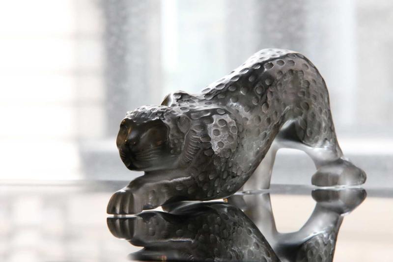 GREY CRYSTAL ZEILA PANTHER SCULPTURE LALIQUE, Designed by Marie-Claude Lalique, the Zeila Panther embodies the strength and grace of a large attacking feline. Through its design, the Panther’s powerful muscles are evident under its crystal fur and numerous spots. Discover Lalique panthers.