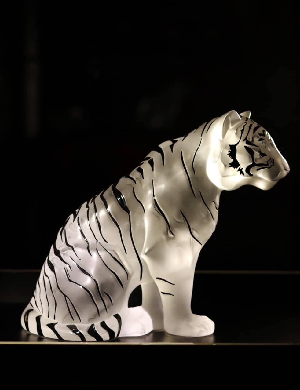 SITTING TIGER CRYSTAL LALIQUE, The Sitting Tiger with black enamel is a numbered edition. Impulsive, solitary, proud, beautiful piece handcrafted in France, piece signed Lalique France.