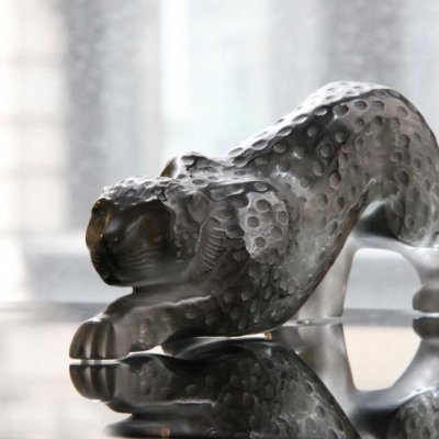 ZEILA PANTHER CRYSTAL LALIQUE, Nimble and sensual, she approaches stealthily, preparing for her attack. Her slim silhouette is enhanced by powerful muscles covered with crystal fur sculpted by thousands of luminous spots. Designed by Marie-Claude Lalique, the Zeila Panther embodies the feline strength and grace.