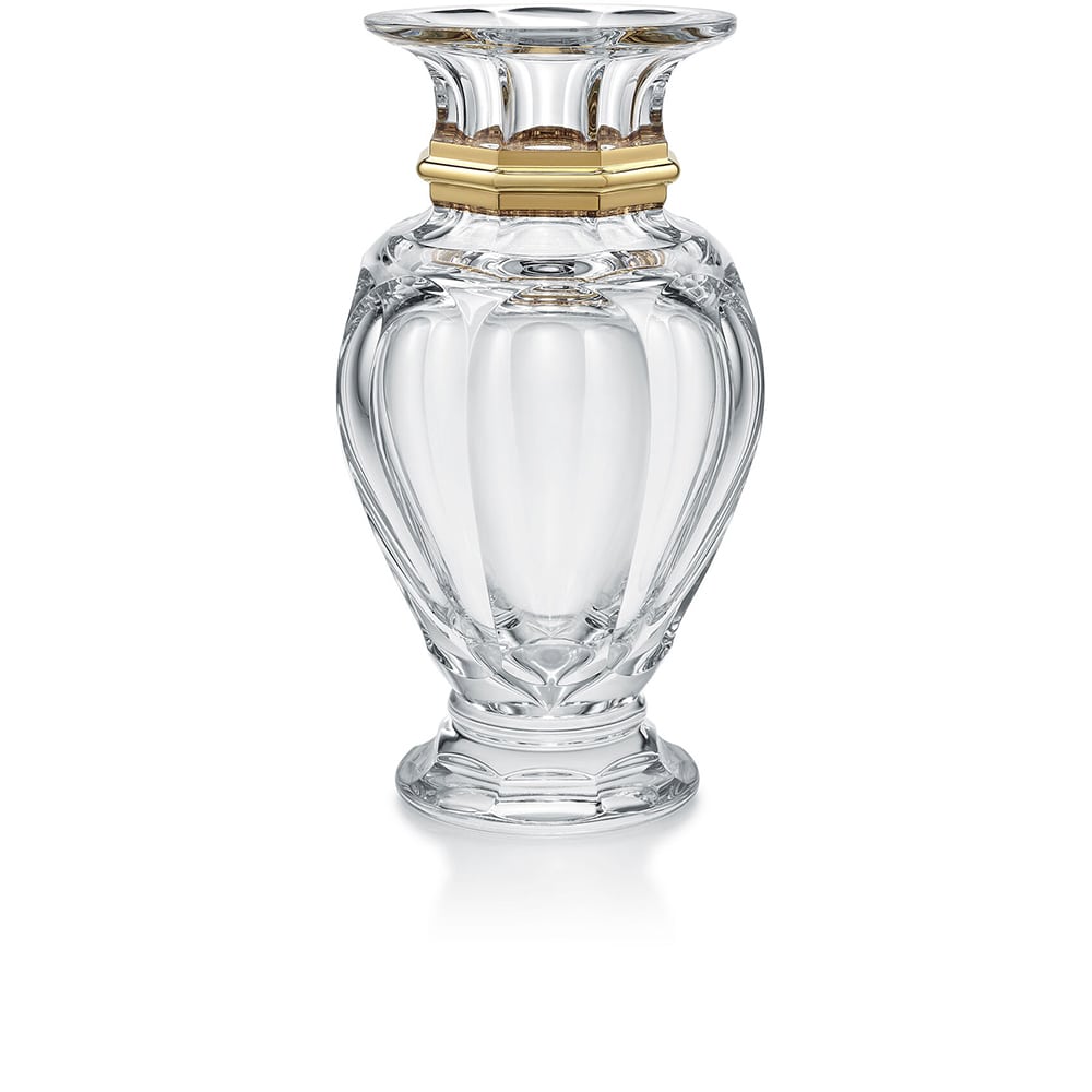 Discover Harcourt Balustre vase, available in red and gold. This Balustre Harcourt vase offers flat cuts in clear crystal. This type of cut creates a seductive visual effect in the body of the vase. The tighter neck of the Harcourt vase optimally holds a bouquet of flowers.