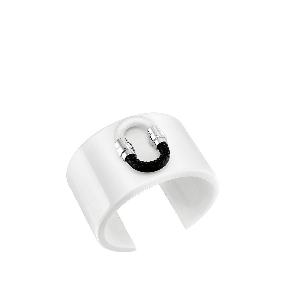 Discover 1927 bangle bracelet Lalique. A mix of motifs in black satin-polished Lalique crystal and white resin.