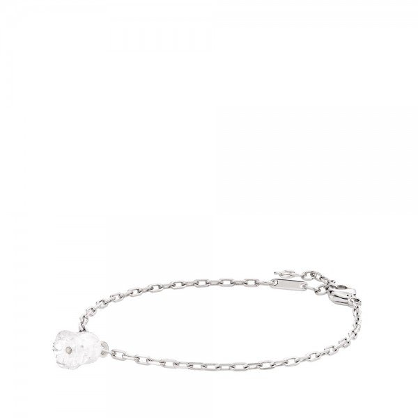 The Muguet bracelet is composed of a clear crystal lily-of-the-valley mounted on silver. Length of the silver chain 19 cm. Discover Lalique Muguet collection.