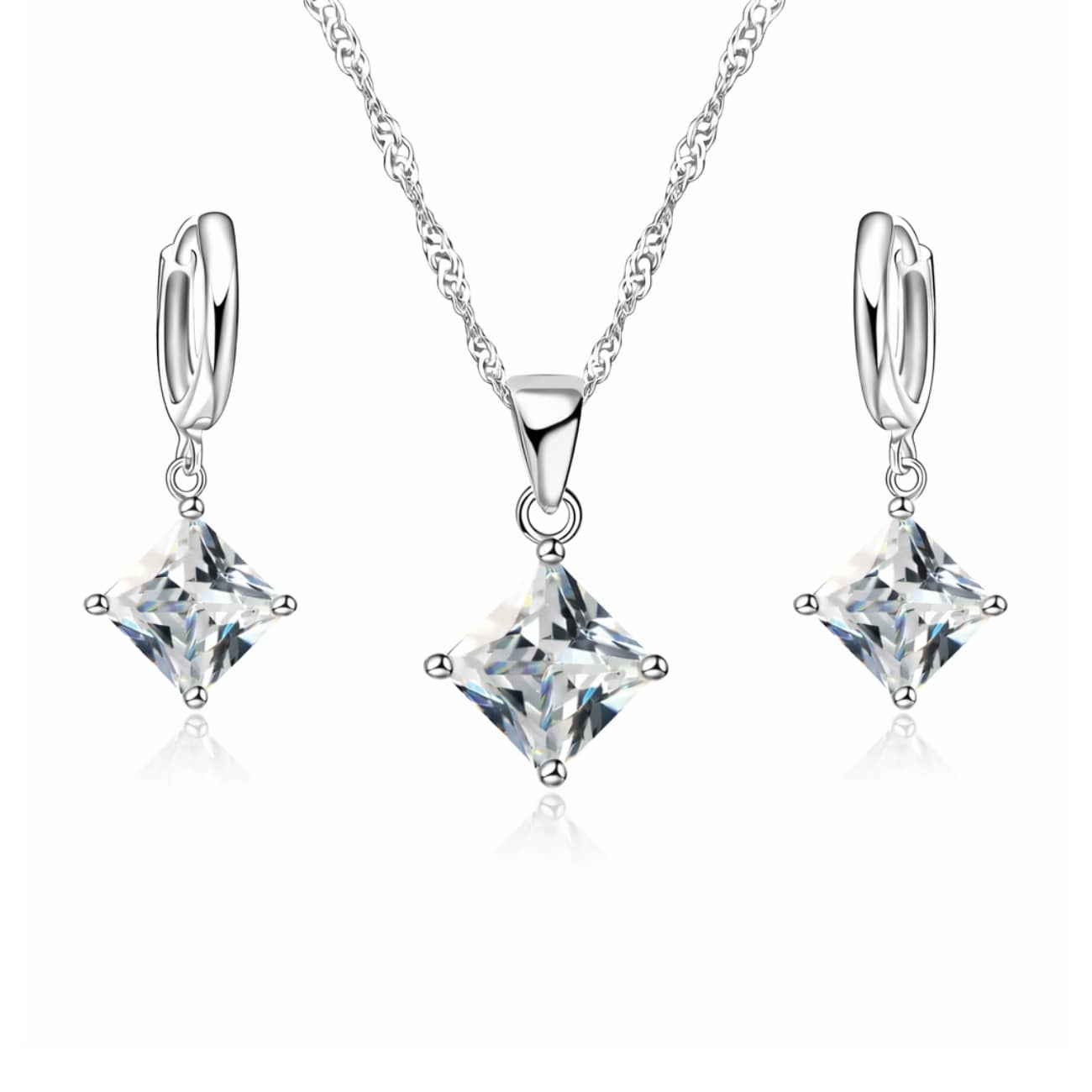 Discover Pendant and Earrings Set, Square Clear Crystal.