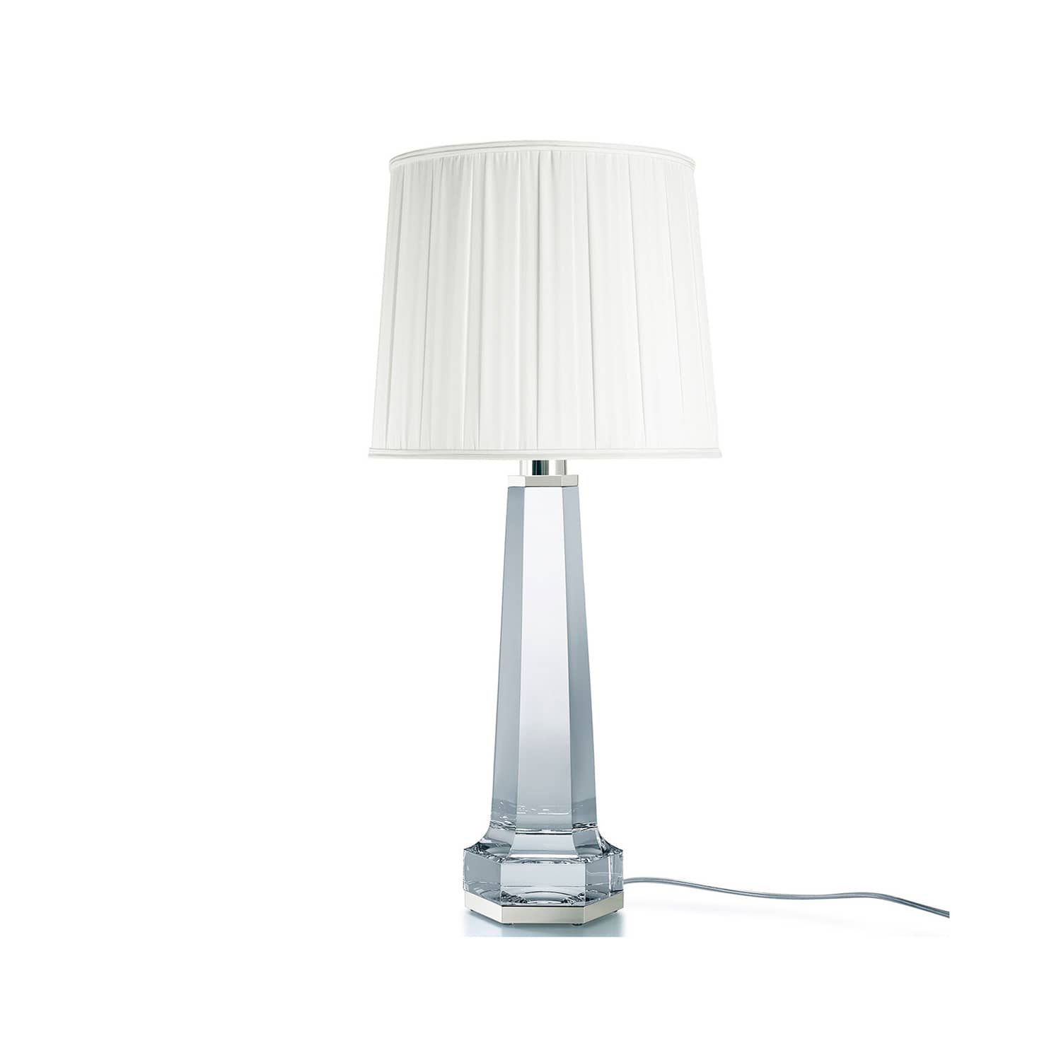 CRYSTAL KRYSTA LAMP BACCARAT, The Krysta lamp is the biggest table lamp ever made by Baccarat. (White pleated lampshade to be ordered separately)Pleated lampshade sold separately. Diffused lighting / Size : H 27,17 x L 12,99 x W 12,99 in / Cable lenght : 62,99 in.