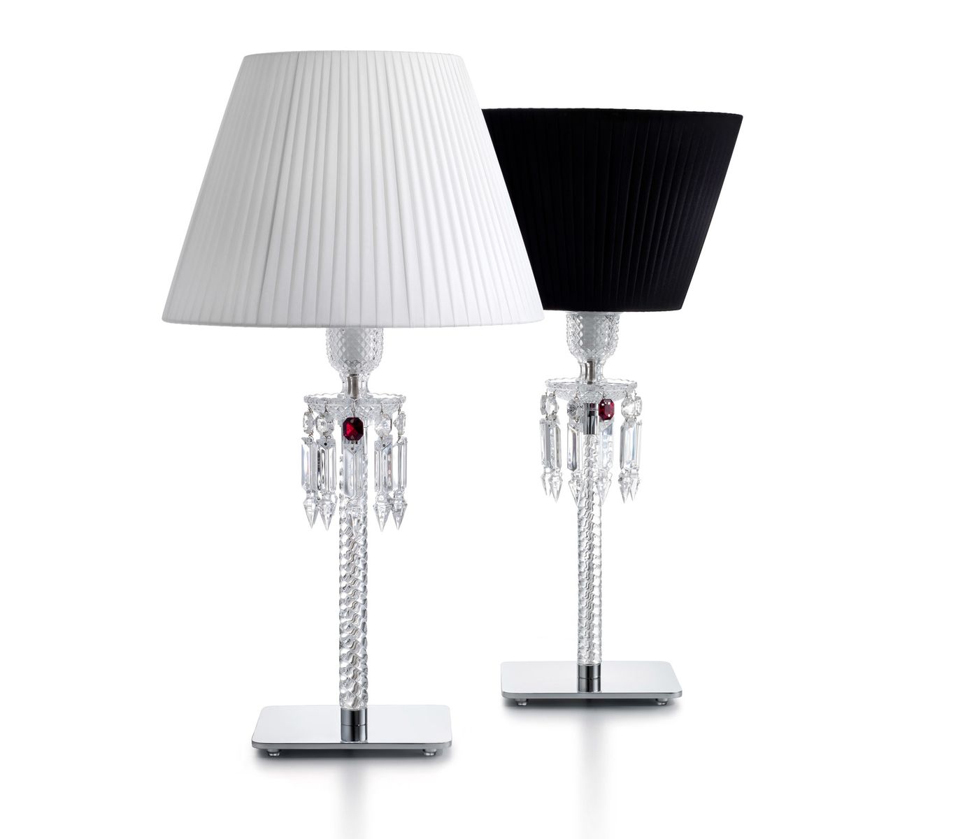 TORCH LAMP WHITE LAMPSHADE BACCARAT, The Torch light collection designed by Arik Levy is a poetic celebration of crystal chandelier ornaments. The new Torch light collection consists of lamps, ceiling lamps, wall units, reading lamps and floor lamps. In the same spirit as the Zénith chandelier which was its inspiration, each piece is composed of a straight chandelier arm with glass pendants. Available with a white or reversible black lampshade, Torch lighting filters light to render a chiaroscuro atmosphere.