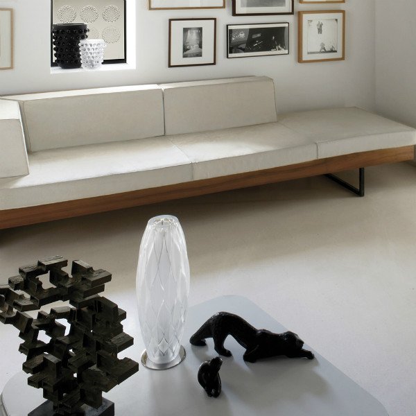 VIBRATION OBLONG LAMP LALIQUE, Vibration. A tribute to crystal. Crystal stretched and worked in its molten state becomes nascent waves of light and delivers the quintessence of its inherent purity.