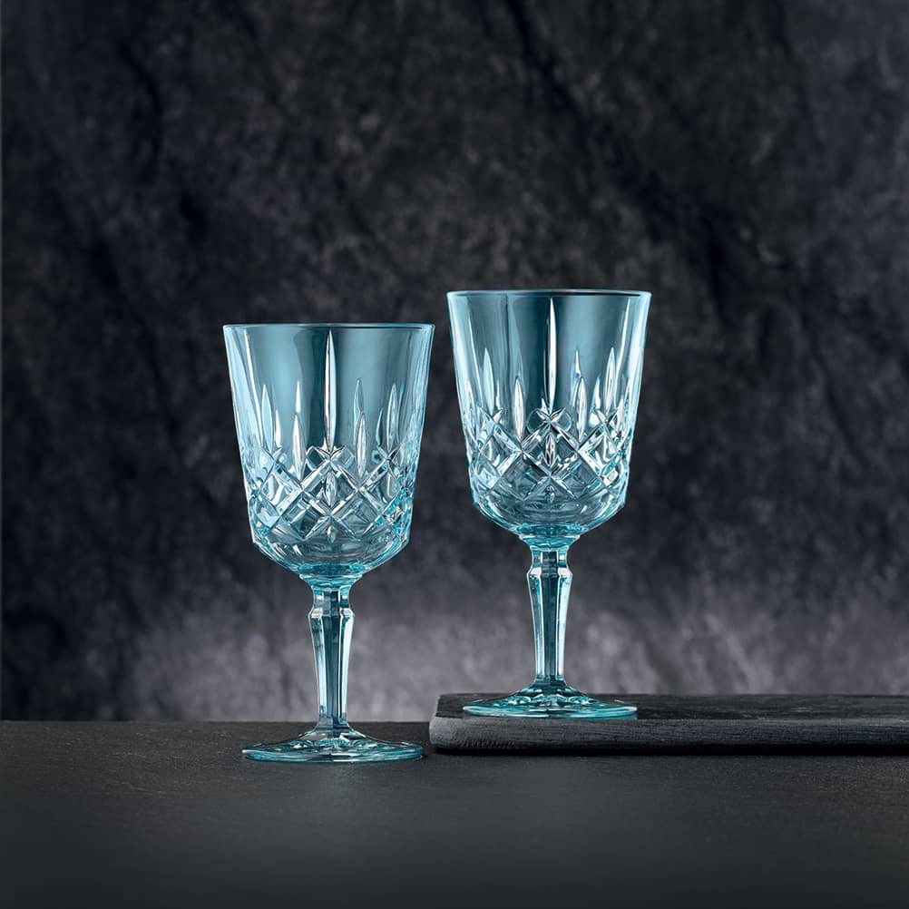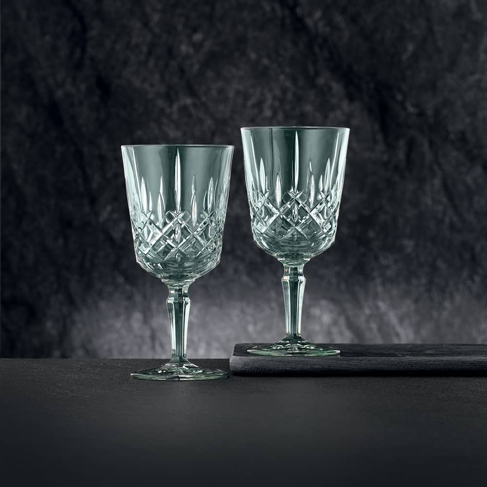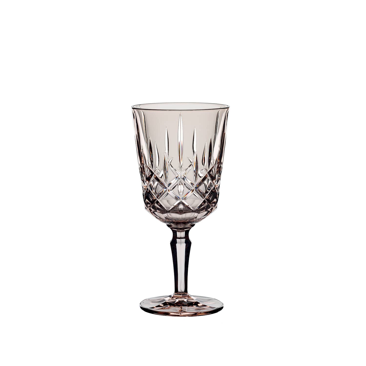 Discover Noblesse color crystal wine glass Nachtmann, 24 % lead crystal. Service cut glass, geometric shape, with a beautiful crystal mass, enough to make a beautiful table decoration. Equally suitable as a water goblet, Whisky or other cocktail.
