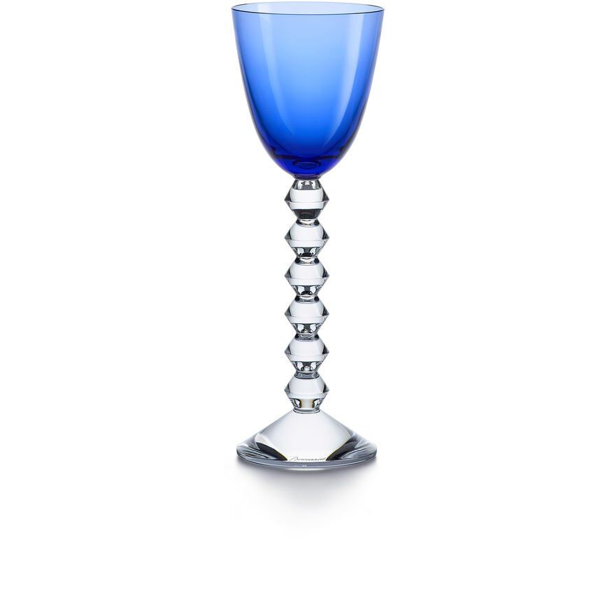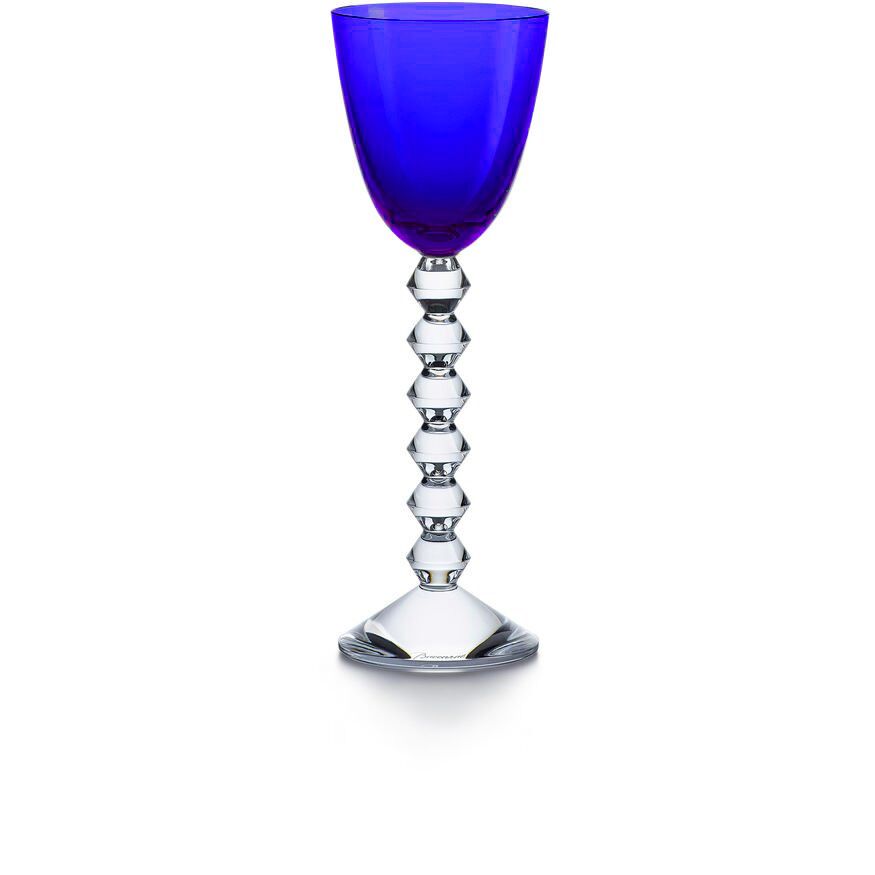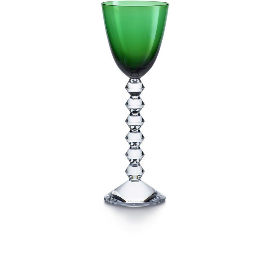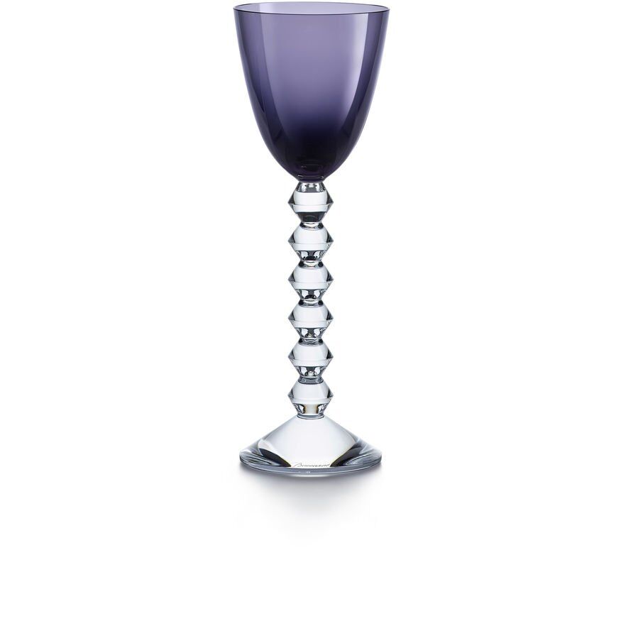 VEGA RHINE WINE GLASS BACCARAT, The geometric stem, comprised of six angular diabolo-cut shapes stacked together, is an eye-catching zigzag. The geometry of the stem is artfully juxtaposed with the smoothness of the bowl. Its unique bevel cut, designed for Baccarat by Savinel & Rozé, makes sipping a fine vintage all the more enjoyable. The Rhine glass is available in a variety of vivid colors, namely amethyst, cobalt, emerald, sapphire, topaz, olivine, and Baccarat’s signature ruby red crystal. The Vega collection also includes the Vega Flutissimo, the Vega champagne flute, the Vega martini glass, and other barware. Discover Vega Baccarat collection.