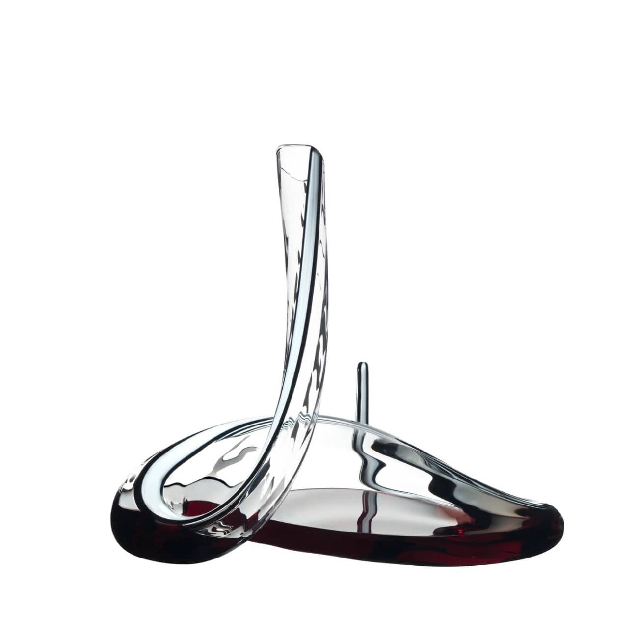 Its dynamic, vertical silhouette generates an impressive double decanting action with each pour: the wine swirls through its curves, creating air pockets that intensify its oxygenation. A characteristic gurgling sound accompanies this ballet, like a signature sound of aeration in action.