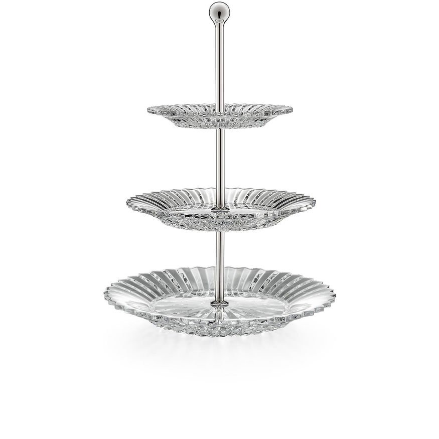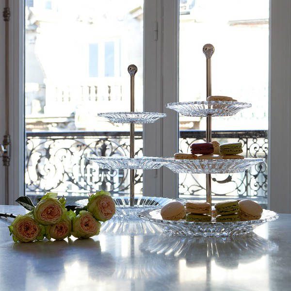 MILLE NUITS PASTRY BACCARAT, The Mille Nuits three-level pastry stand is a charming centerpiece. The decorative crystal plates and the varnished silver-plated metal stand are both elegant and functional. Discover Mille Nuits Baccarat collection.