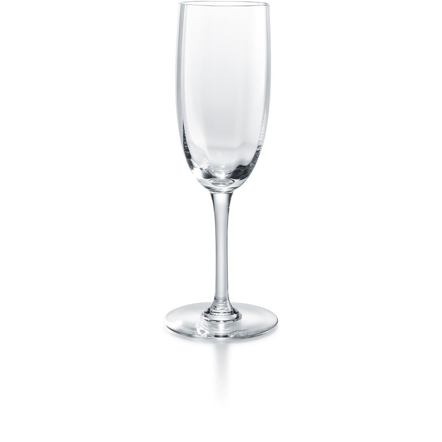 MONTAIGNE CHAMPAGNE FLUTE BACCARAT, Unembellished, the translucence of the Baccarat Clear crystal is in its full splendor. The hallmarks of classical stemware design—the clean line of the stem and the slight curvature of the bowl—mask an unexpected “optic” effect. The outwardly smooth bowl in fact has subtle fluting on the interior, which in turn casts a lovely halo of shadows on the table. Thanks to Baccarat’s craftsmanship, the varietal’s nuances of both color and taste can be readily detected. Classic crystal champagne flute Baccarat, Clear crystal flute baccarat.