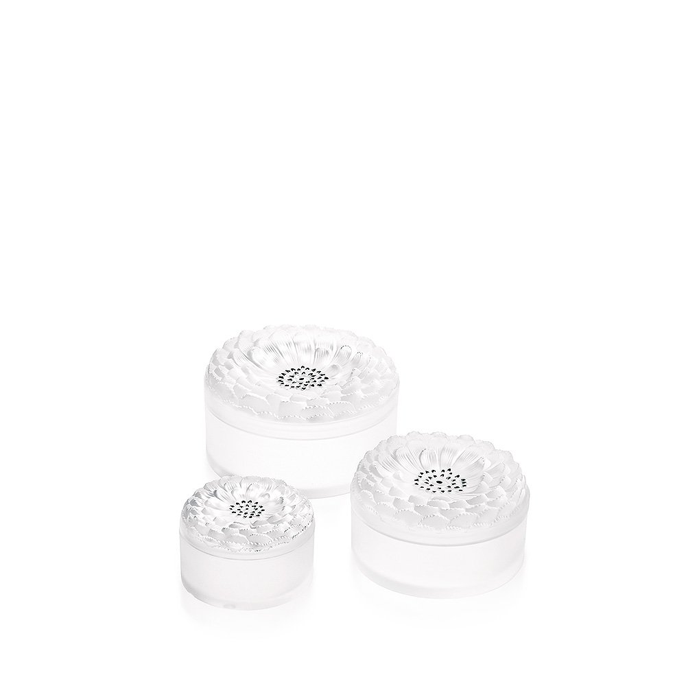 Discover Dahlia box Lalique, available in two sizes, clear crystal.