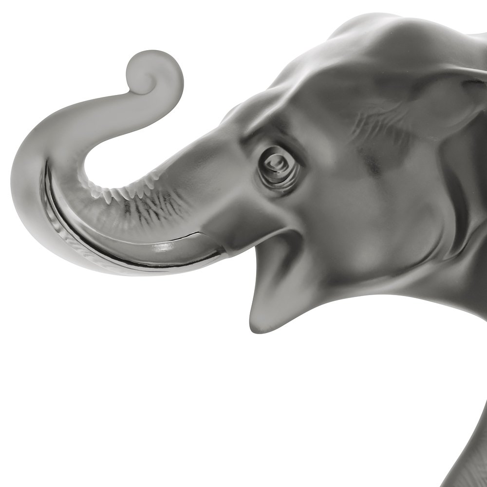 SUMATRA ELEPHANT LALIQUE : A symbol of wisdom, longevity, prosperity and benevolent power, the elephant is able to overcome any obstacle. Lalique pays tribute to this animal gifted with great intelligence and memory through the majestic Sumatra elephant. Highlighted by the brilliance and depth of grey crystal, Sumatra is a limited edition of 288 pieces, refers to the lucky number eight in Asia.
