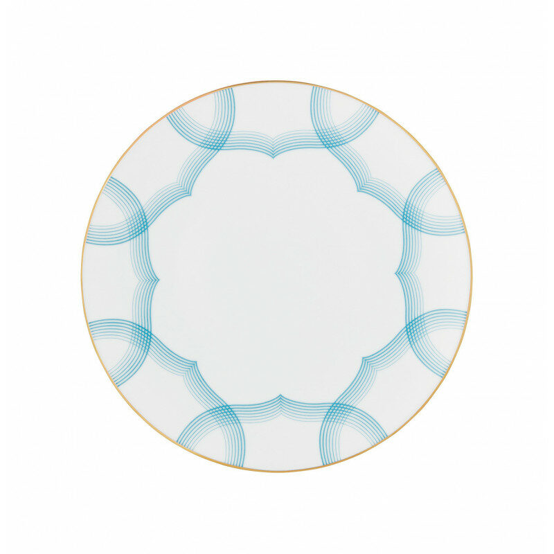 Enhance your table with the Aura de Raynaud collection, an exceptional piece combining tradition and modernity. Inspired by 18th-century scalloped porcelain, this creation reveals a graphic design with intense blue lines, delicately tapering into airy curves. A gold rim and dot illuminate the overall effect, bringing radiance and refinement to your everyday settings as well as your most elegant receptions.