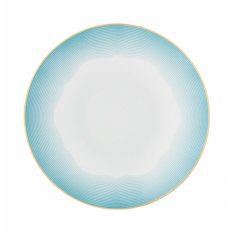 Enhance your table with the Aura de Raynaud collection, an exceptional piece combining tradition and modernity. Inspired by 18th-century scalloped porcelain, this creation reveals a graphic design with intense blue lines, delicately tapering into airy curves. A gold rim and dot illuminate the overall effect, bringing radiance and refinement to your everyday settings as well as your most elegant receptions.