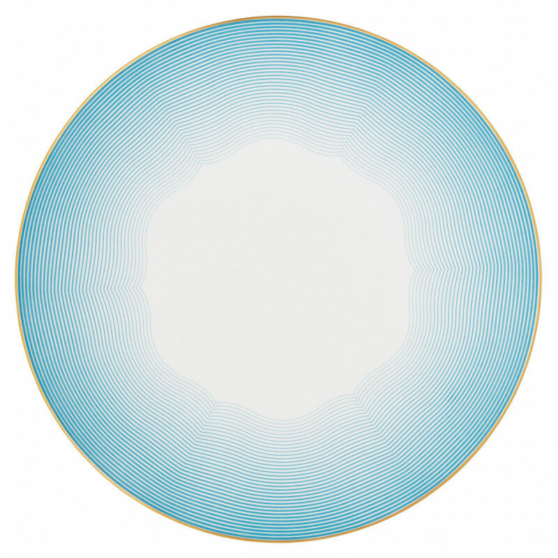 Enhance your table with the Aura de Raynaud collection, an exceptional piece combining tradition and modernity. Inspired by 18th-century scalloped porcelain, this creation reveals a graphic design with intense blue lines, delicately tapering into airy curves. A gold rim and dot illuminate the overall effect, bringing radiance and refinement to your everyday settings as well as your most elegant receptions.