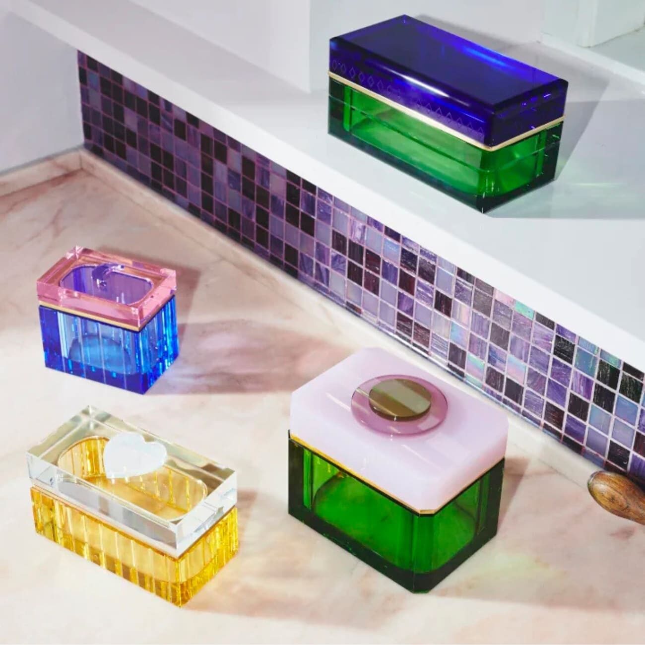 Its collections draw inspiration from Art Deco, Bauhaus, and colorful universes, offering bold pieces with geometric lines and striking chromatic contrasts.